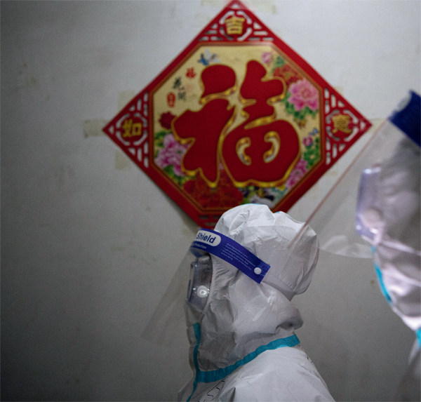 1月13日,在河北石家庄市第二轮全员核酸检测期间,解放军陆军军医大学士官学校附属医院白求恩医疗队的医护人员前往居民小区登门入户,为行动不便的老人等采集核酸检测样冬。摄影/本刊记者侯宇 2021年1月5日,在河北报告此轮疫情的首例确诊病人后两天,中国疾病预防控制中心主任、中科院院士高福率队到达石家庄。那一天,河北省累计确诊病例39例,无症状感染者78例。截至1月18日24时,这两个数字已分别增至8