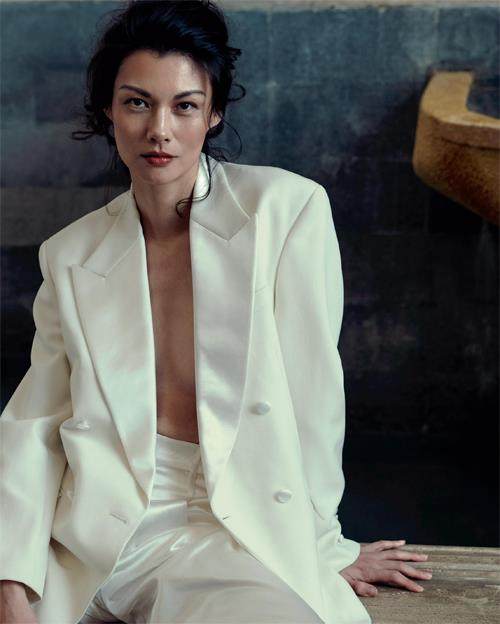 邬君梅,曾入选著名杂志People 评选的“全球最美50人”,有媒体赞美她为“美丽而伤感的亚洲面孔 ”。这一天拍摄ELLE,邬君梅是快乐和洒脱的,充满活力甚至带着点调皮,整个摄影棚因为她的到来满是笑声,她形容自己“像是正午的阳光”。只化了最简单的妆,笑起来眼角有年龄自然褶皱的痕迹,让眼睛里的故事感更深邃。音乐和氛围太沉重的时候,她会突然地跳脱出来,冲着取景器给一个wink,像个天马行空的小