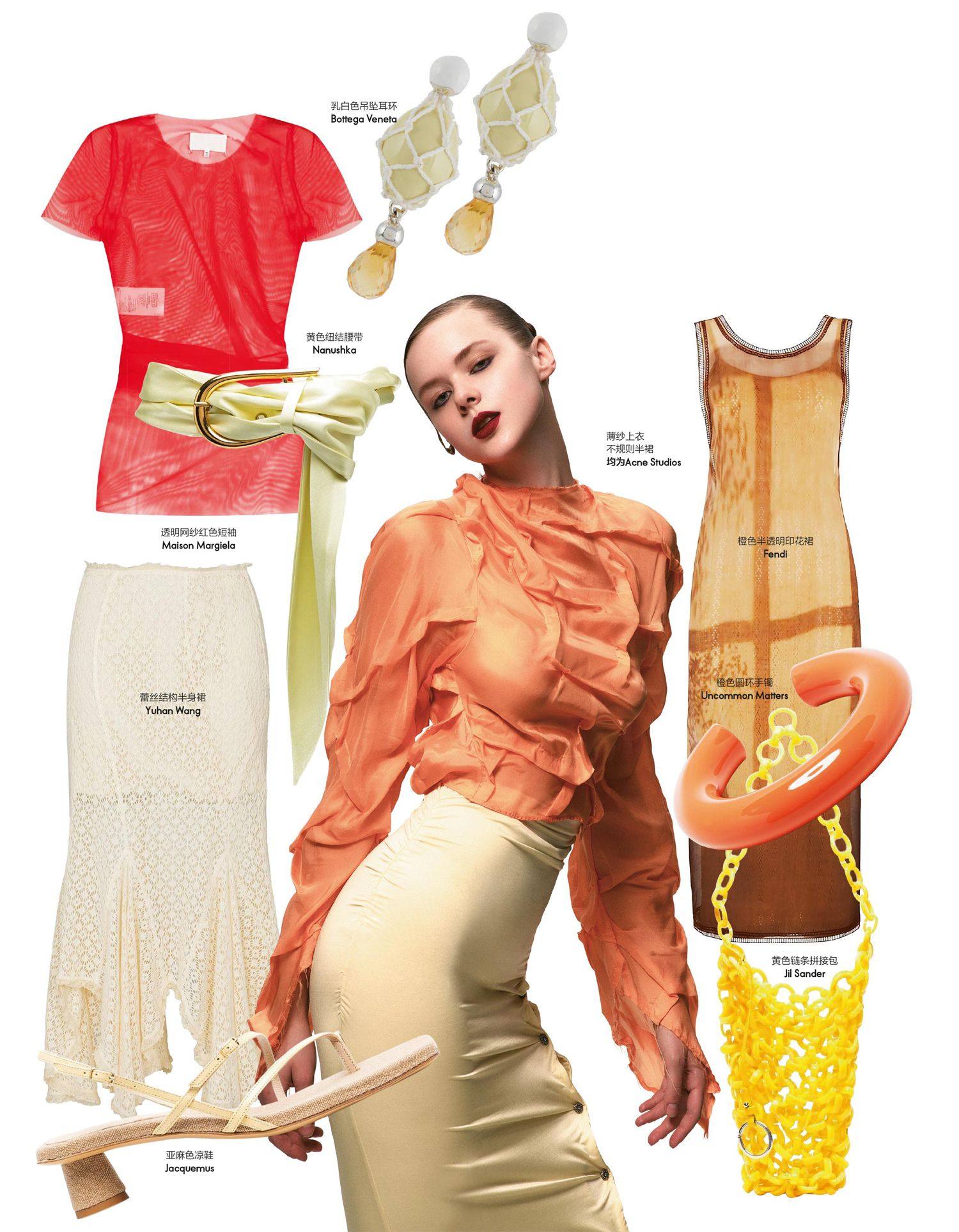 和平饭店 珠饰细节吊带上衣Lanvin束腰式A字裙、高腰修身长裤均为HAIZHEN WANG Nudistsong高跟凉鞋Stuart Weitzman 武康大楼 V领露背府绸连衣裙、厚底皮质及膝靴均为Alexander McQueen金属链条皮革装饰项链Givenchy 亚麻真丝针织露背无袖上衣、水洗棉质华达昵高腰长裤、小牛皮木底鞋均为Hermes 18K白金日本Ako