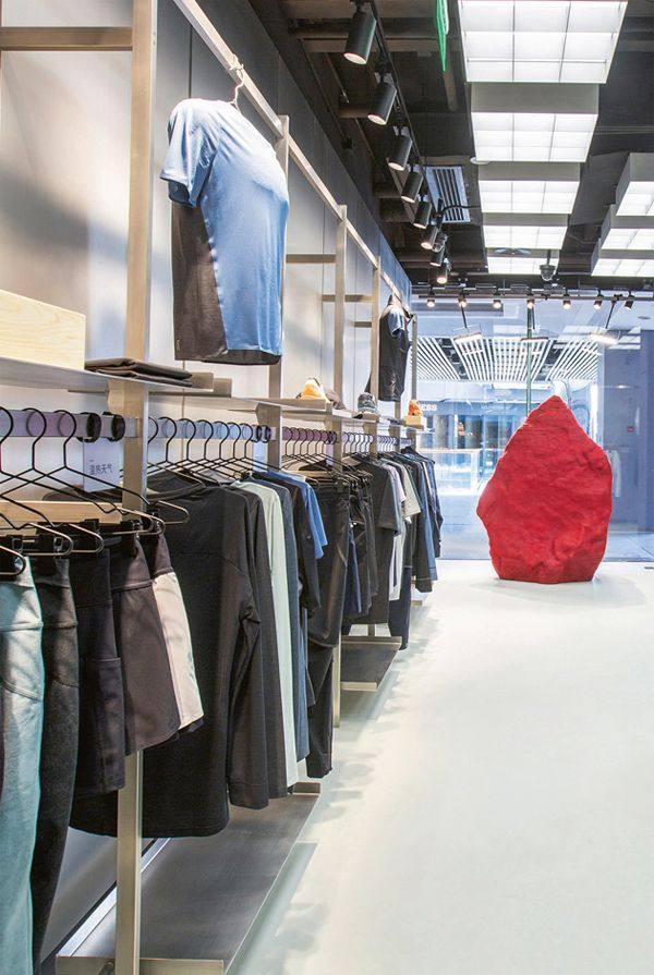 自然与科技 五月正式亮相的On昂跑北京首家直营店延续了品牌简约与创新的美学风格,以大面积金属材质、网架、碎石墙以及原木贯穿空间,配以互动屏幕及抽拉式设计的柜式鞋墙陈列。另增添全新服饰陈列专区,开启了四季百搭舒适的运动生活方式。落地窗后的“巨石”装饰是通过扫描阿尔卑斯山脉恩嘎丁山谷里的一块石头,随后以生物基原料以及选用中国限定色进行3D打印还原创作的,传承着On品牌将现代科技与大自然融合的理念