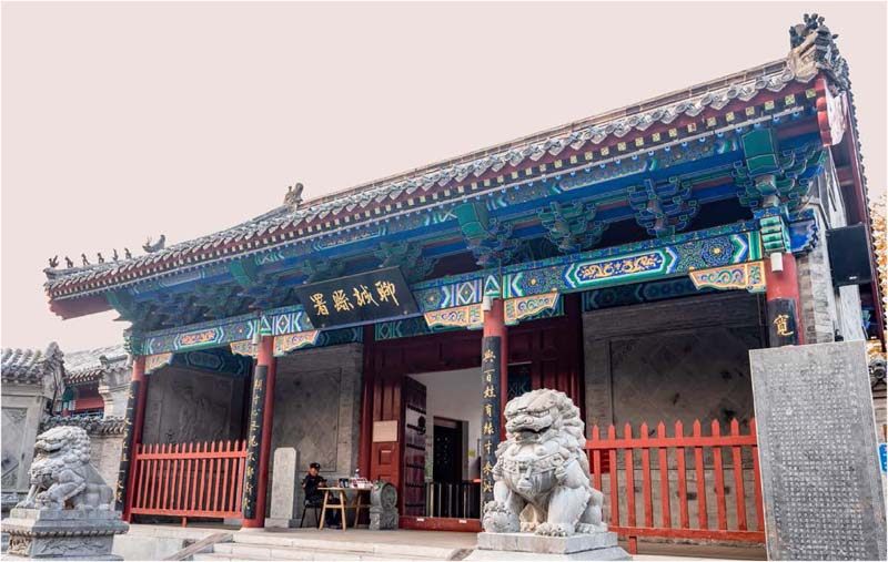 山东聊城水上古城县署 摄影丨宁志浩 “衙门”还是“牙门”? 衙门是古代官署的称谓,关于衙门的由来有三种说法。 第一种说法是在古代的时候,衙门的别称是“六扇门”。古代官署的大门有六扇,这六扇门上有猛兽利牙的图案,猛兽的利牙在古代是常用来象征武力的,因此,官署的这六扇门最初被称为“牙门”。 第二种说法是,牙门是古代的军事用语,指的是军旅的营门。在古代巡狩兵车聚集的地方,都建有兵营,这个地方的旗
