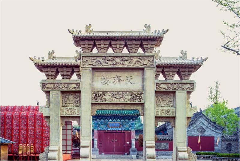 台儿庄古城天齐坊牌坊 没有门扇的门 在封建社会,牌坊一般为表彰功勋、科第、德政以及忠孝节义而立,如功德坊、贞洁坊、标志坊、纪念坊、陵墓坊等。 关于它的来源,有两种说法,一种说法认为它是由衡门衍变而来的。春秋时代的《诗经》中,便有相关介绍:“衡门之下,可以栖迟。”所谓衡门,就是两根柱子架一根横梁所组成,应该是牌坊的“老祖宗”。据专家研究,唐代城市是以里坊制来划分管理的,在“坊”与“坊”之间有墙