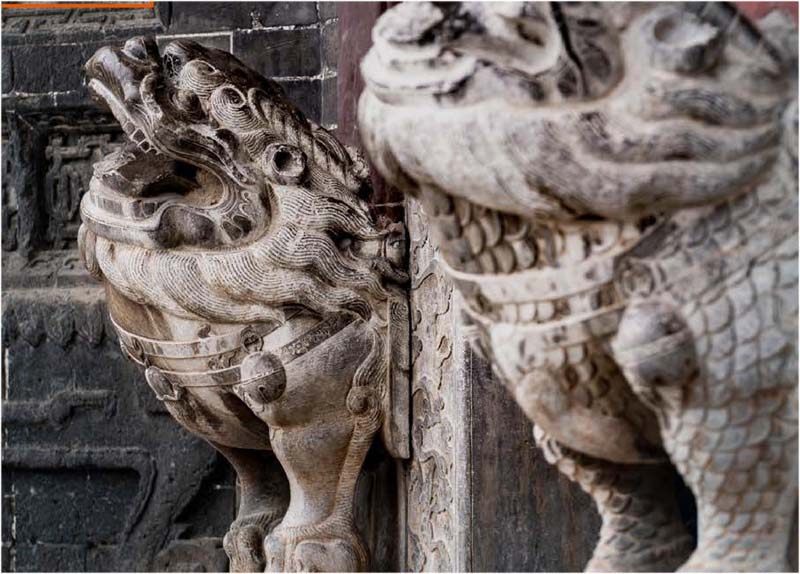 聊城市山陕会馆的门墩儿 摄影丨宁志浩 门墩儿又称门座、门台、门鼓,抱鼓石。常见于中国传统住宅、特别是四合院的大门底部。它的实用价值在于它是门枕石的一部分,院子大门下面,用于支撑门框和门轴的石质构件,整体称为门枕石,延伸出来的部分称为门墩儿。它是整个门楼儿中比较有特色的一个部件,通常会雕刻一些传统的吉祥图案,既有装饰作用,又有实用价值。 门墩儿的样式有很多,有多角柱形和水瓶形等,但比较普遍的还是