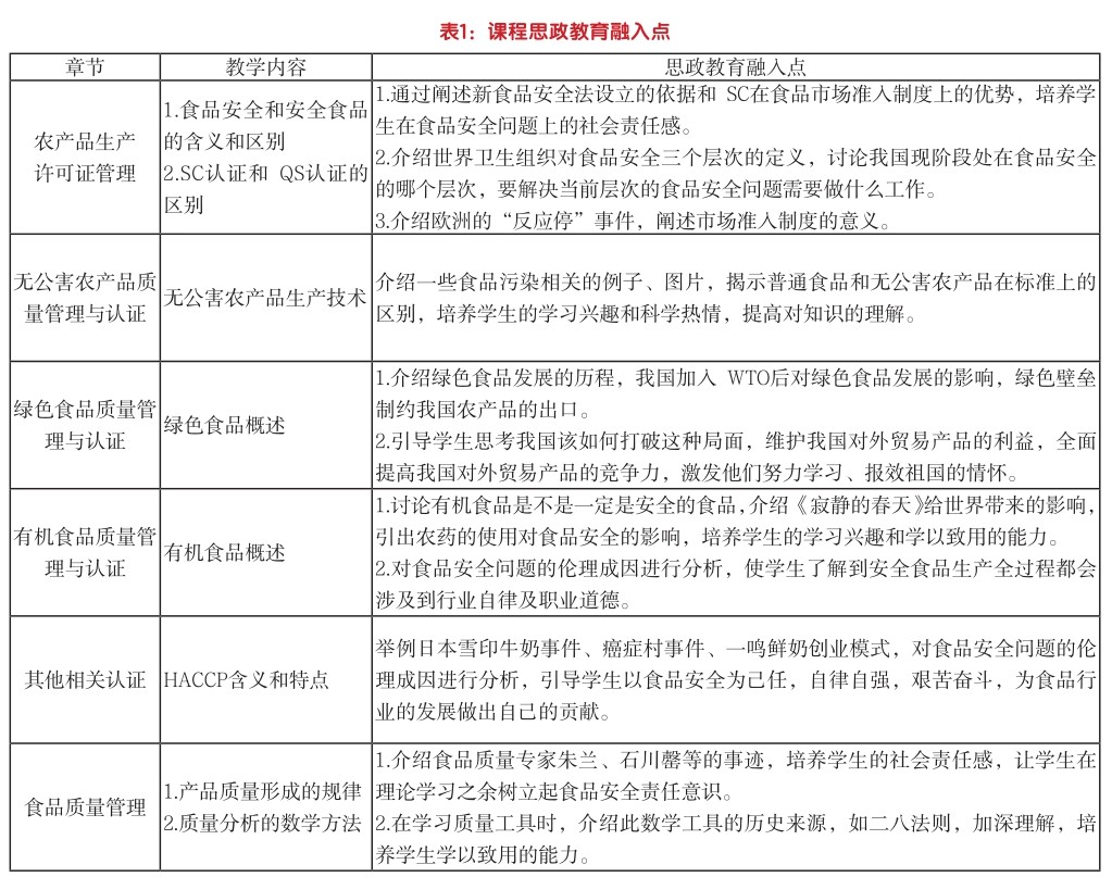 以食品安全教育为导向的《农产品质量管理与认证》课程思政探索