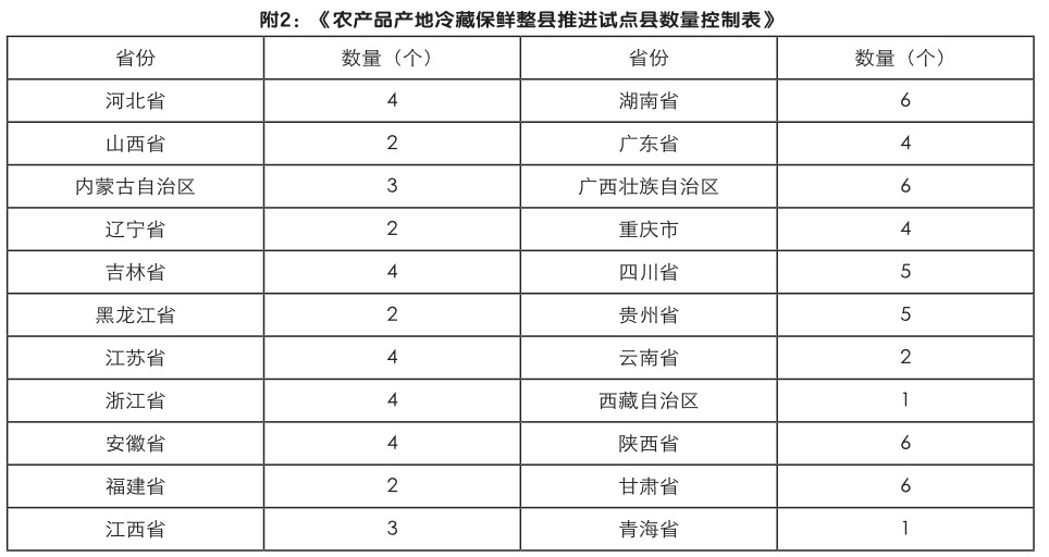 农业农村部办公厅、财政部办公厅《关于全面推进农产品产地冷藏保鲜设施建设的通知》(节选)