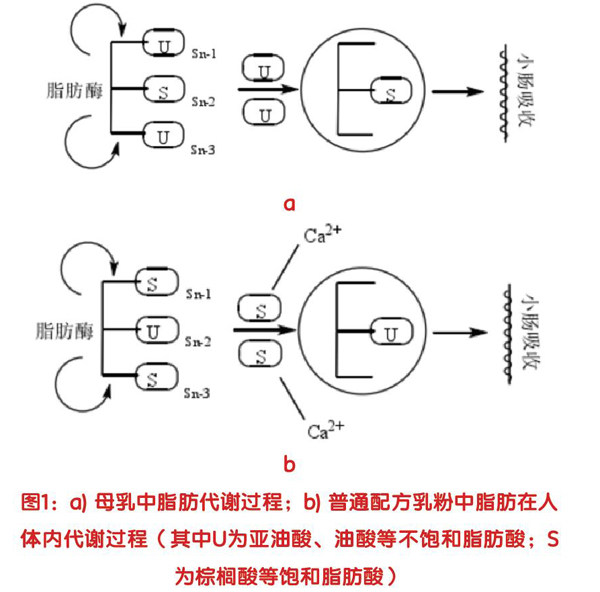 母乳是婴儿最理想的食物,母乳中含有3%-4%的脂肪,这些脂肪可为婴儿提供60%左右的能量,并对婴幼儿的生长发育起到非常重要的作用。但因社会环境等原因,我国母乳喂养率较低,于是很多家庭便选择母乳替代物——婴幼儿配方乳粉来喂养婴儿。但由于普通的婴幼儿配方乳粉多以牛乳脂肪和植物油为油脂配料,其2位棕榈酸酯(Sn-2棕榈酸酯)含量与其在母乳中的含量存在较大差异,从而导致婴幼儿对普通配方乳粉的营养吸收和消化