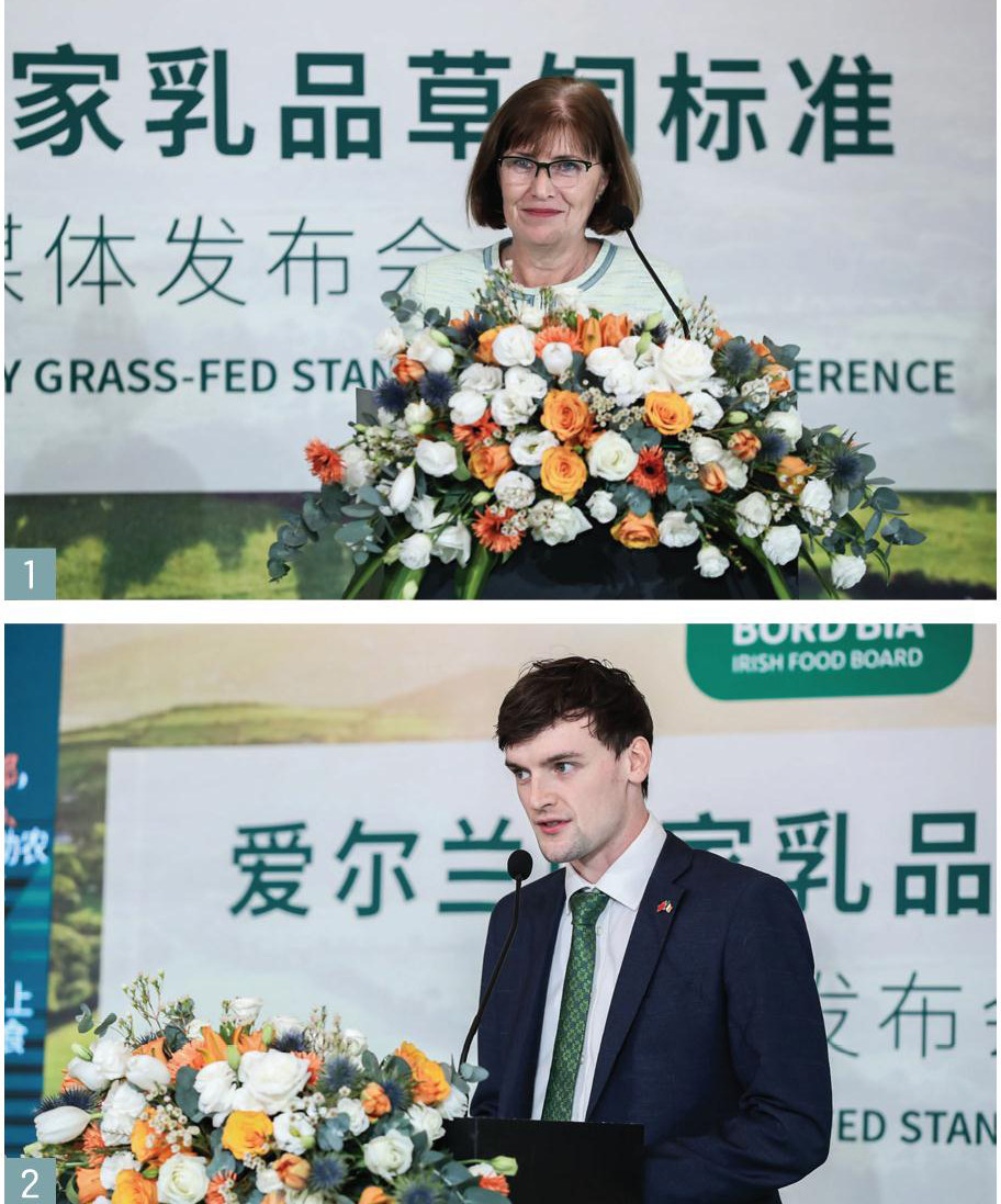 2021年10月18日,爱尔兰食品局(Bord Bia)在北京首发《爱尔兰国家乳品草饲标准》。这是全球首个在国家层面实施的草饲标准,其数据来源于经第三方独立审计认证的爱尔兰可持续乳制品保证计划(SDAS),可追踪、查验爱尔兰农场的奶牛户外放养天数及新鲜牧草饮食占比。 “我很激动,能为中国消费者和我们的贸易伙伴介绍这个由爱尔兰首创、以科学数据为支撑的草饲标准。它的发布将有助于爱尔兰持续不断地为中国