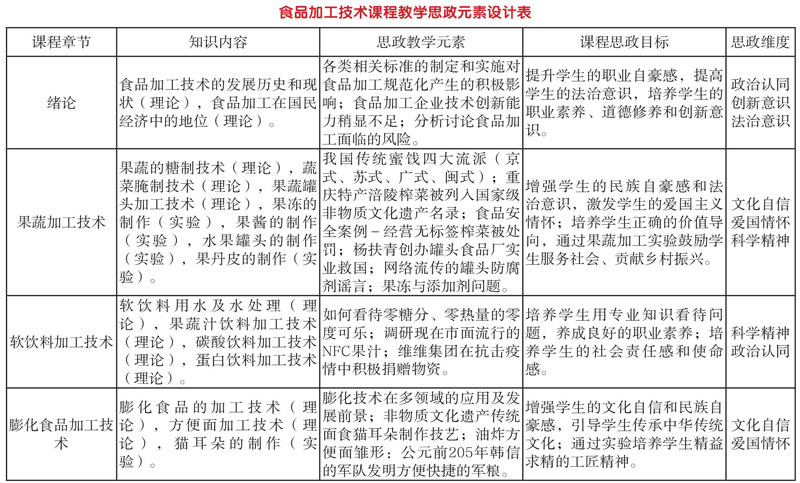 高职食品加工技术课程思政教学分析及实践