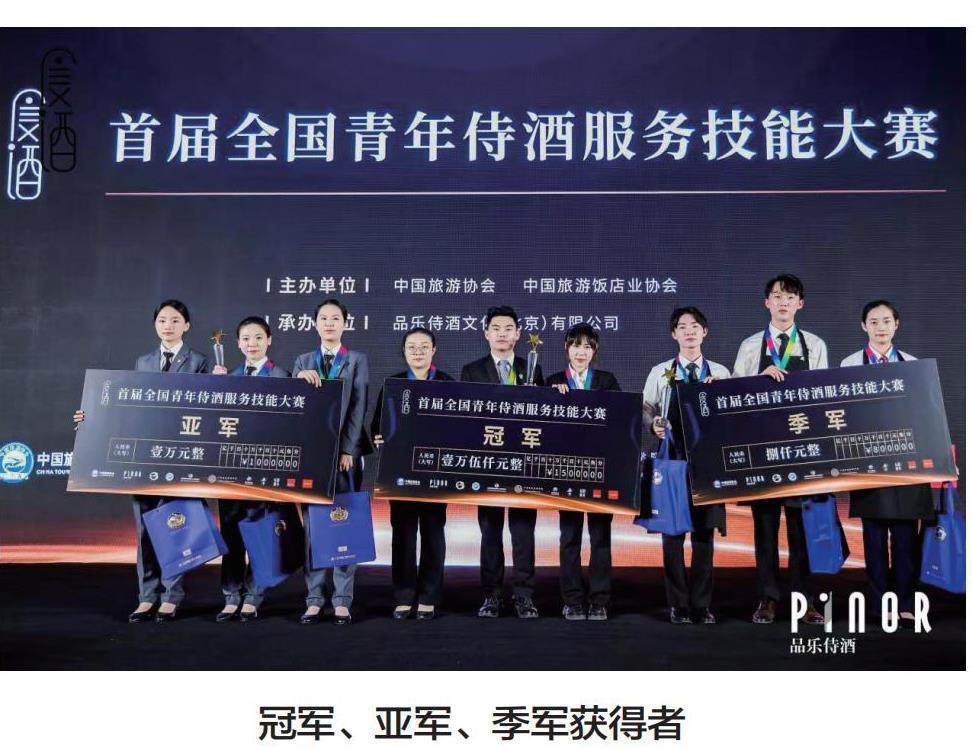 2023年3月23日,由中国旅游协会以及中国旅游饭店业协会主办,品乐侍酒承办的“首届全国青年侍酒服务技能大赛”复赛以及决赛在北京中瑞酒店管理学院教学酒店圆满落幕。 经过一天紧张、刺激的比赛,最终,北京第二外国语学院中瑞酒店管理学院的黄金李荣获本次赛事冠军,上海旅游高等专科学校的T-SIA获得亚军,青岛酒店管理职业技术学院的海斯曼获得季军。 同时,本次比赛还颁发了7个特别奖项,以表彰在赛事中某个