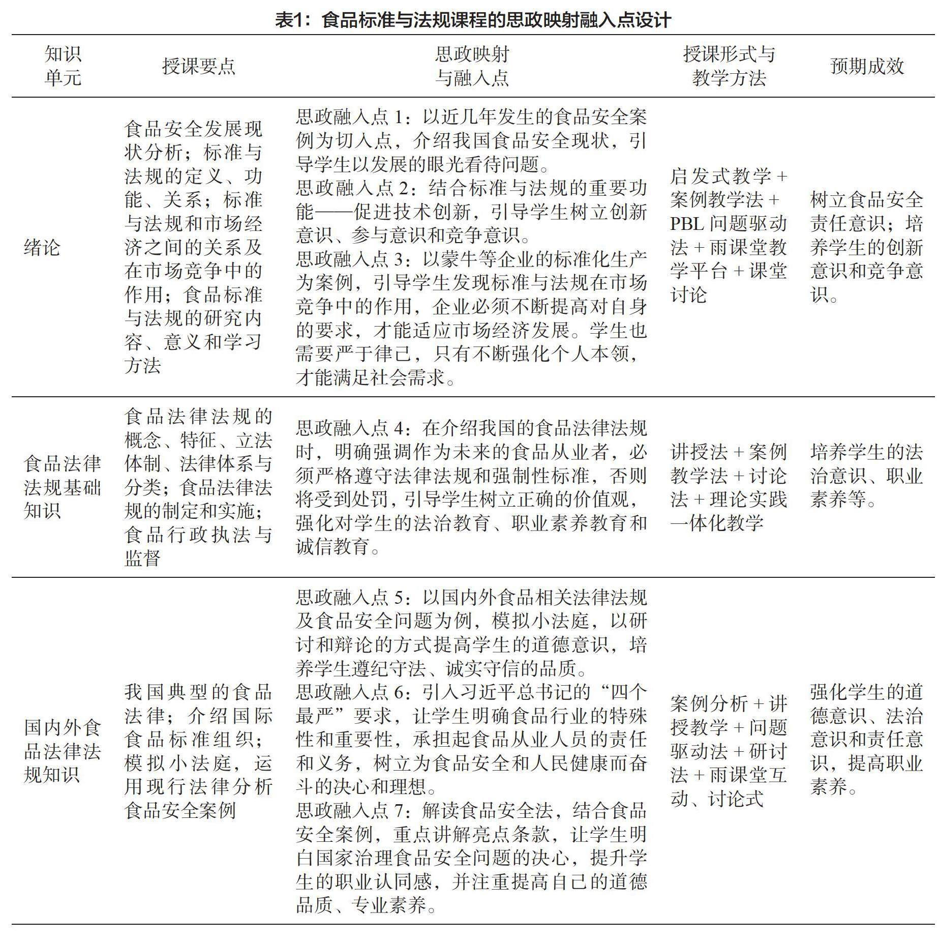课程思政视角下食品标准与法规课程育人路径探索