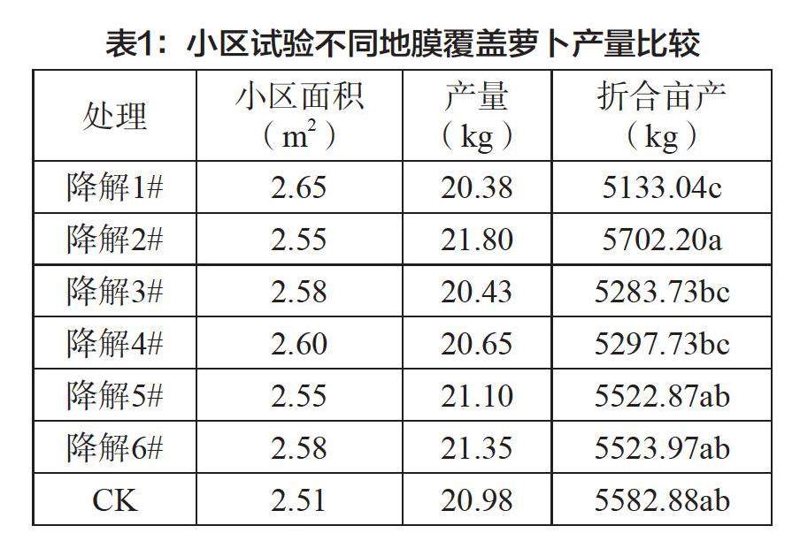 不同规格全生物降解膜在春萝卜上的应用
