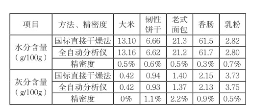 水分、灰分是食品中重要的组成部分,在食品检验中也是重要的理化指标。采用标准方法测定水分、灰分对人力和时间的要求较为严格,并且往往采用热失重的原理进行测算,样品在每一个试验阶段的质量都需要通过人工进行测算,因此测算结果很容易受到外界环境以及人为因素的影响而出现误差。而全自动水分灰分分析仪能够省去大部分人力操作,并且检测结果的准确度和精密度也完全符合标准要求。本文采用瑞士Precisa公司的全自动水分