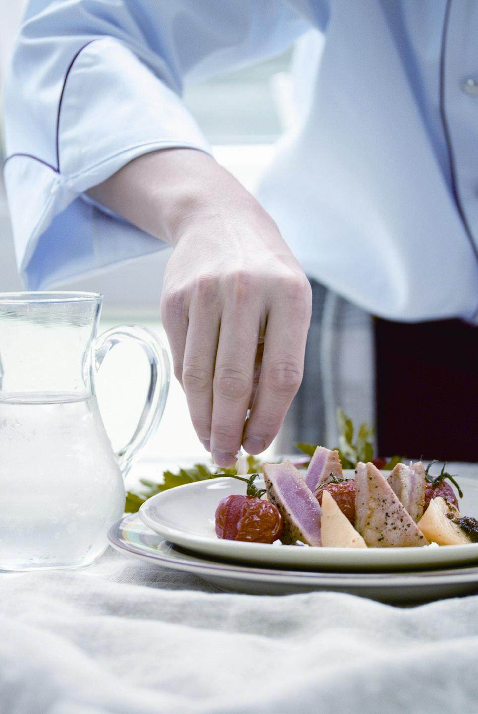 人们的生活质量在不断提高,对饮食的要求也越来越高,不仅追求食物鲜美的口感,也逐渐对美食艺术提出了更高的要求。因此,厨师应深刻研究菜肴的装饰技巧,提高菜肴的艺术观赏性,更好地满足顾客需要。 一、菜肴装饰物概述 1.装饰物的含义。菜肴装饰物,顾名思义就是摆在菜盘上或汤碗中用来点缀主体食物的菜品。装饰物不可喧宾夺主,但却是点睛之笔,起到美化菜肴的作用。同时,装饰物应兼具食用功效,因此要选择可食性原料
