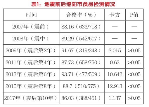 绵阳市“5.12”地震后食品安全工作及十年效果分析