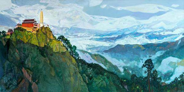 《胜景》 王辉 150x300cm 布面油画 2020年 《古镇里的教堂》 王建国 80x120cm 布面油画 2020年 油画传入中国已历百年,在消化与吸收、借鉴与厘清的语言建构中,逐步成为当代画家表述中国文化主题和表达思想观念的视觉载体。特别是新时代以来,中国模式和中国经验,为世人呈现出一个具有世界意义的社会主义发展中大国的成功案例和视觉图景,也为创作者提供了鲜活生