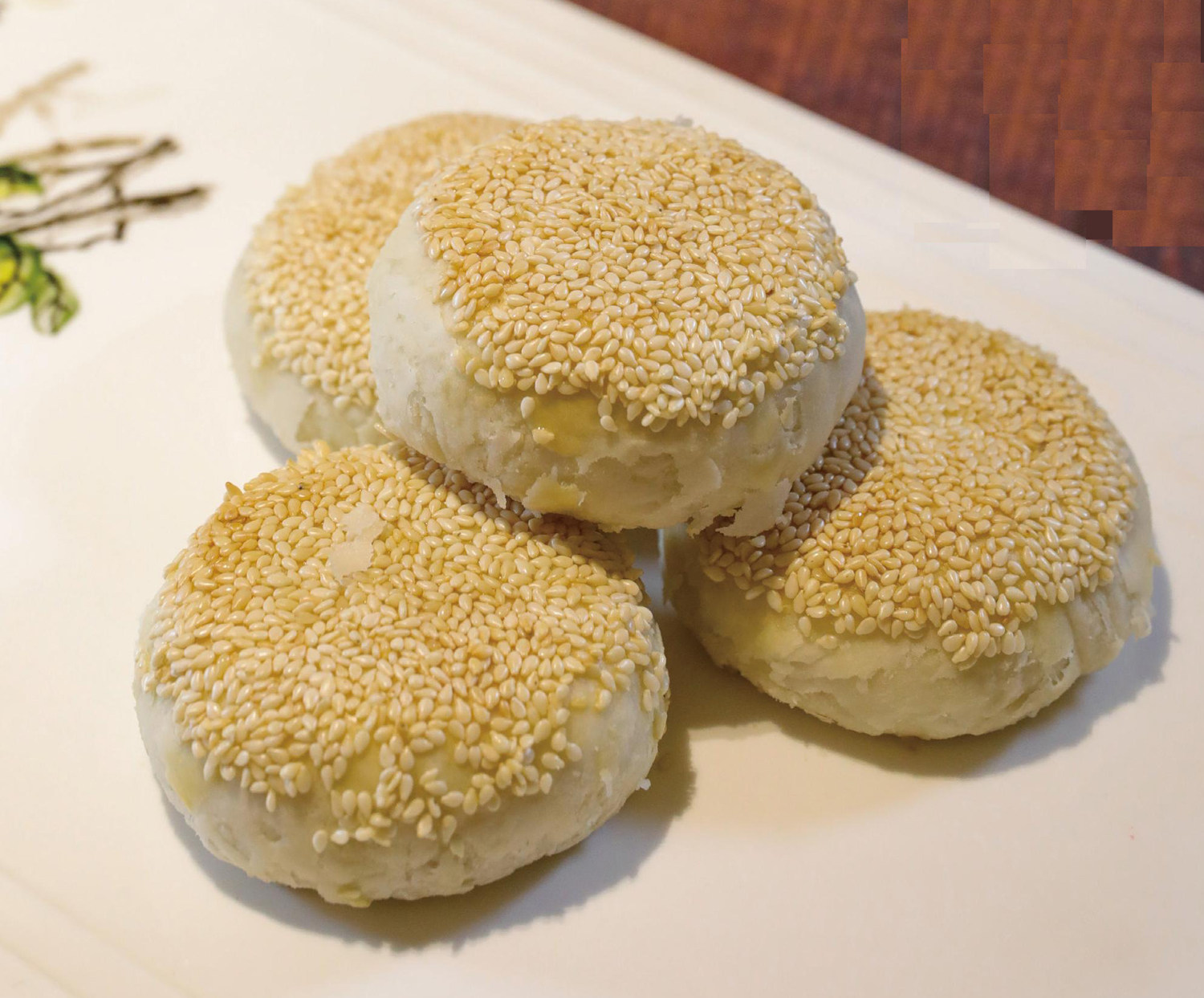 萝卜丝酥饼 原料与调料 面粉、猪油、白萝卜、火腿、葱、姜、花椒、盐、味精、鸡蛋、白芝麻 制作方法 馅料 1 将白萝卜去皮、切丝,用盐腌20分钟挤出水分;2 火腿切粒,葱切葱花、葱段,姜切片;3 用猪油将葱段、姜片、花椒炸香后,将油拌入挤出水分的萝卜丝中冷却拌馅。 制皮 1 油酥皮:面粉用猪油搓成面团;2 水油皮:面粉加猪油、水和成水油面团。 成形 1 水油皮(1∶1)包油酥皮,压
