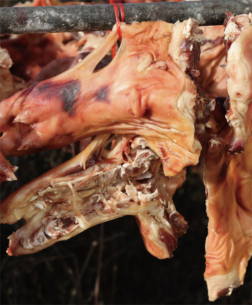 金坛茅山旅游渡假区仙姑村村如其名,气质宛若天仙。暧暧远人村,依依墟里烟。漫步村中,山、水、林、田、园相互融合,山峦起伏,水绿如翡,田园相依,阡陌交通,曲径通幽。金坛茅山因为产盐,自古就有用盐来腌鸡鸭鹅等食材的习俗。几千年的古法手工腌制方法流传至今。 入冬后仙姑村大酒店就开始晒咸猪手了,远远看去像极了一串串风铃,黄黄的、红红的,讨人喜欢,瞬间觉得离过年不远了。咸猪手胶原蛋白丰富,外焦里嫩,满口鲜香