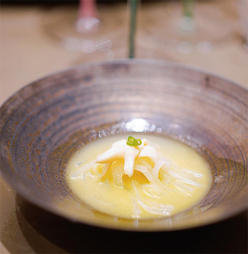 味觉的四季,源于自然,形于巧思,成于匠心,每种食材在厨师的一双巧手下,都能变换出百般形态。无论食材珍稀或普通,高贵或平凡,都有自己独特的性状特征。厨师用心发掘食材的特性,可以带给食客丰盛的四季。 上海曹家渡的久席·四季淮扬餐厅距离静安寺商圈很近,又处在安静的一隅,让人在都市生活中可以静心感受新淮扬菜的风味。走进餐厅,感受到环境风格十分优雅,色调鲜亮而不失沉稳。仙鹤是餐厅装饰中的吉祥元素,灵动跳脱
