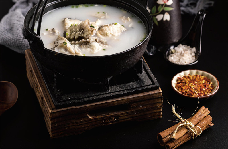 江苏省餐饮行业协会河鲀产业工作委员会殷明鸿优选高品质河鲀鱼作原料,谨慎地掏出鱼眼,开膛去皮,洗净鱼血,再将鱼肝、鱼白及筋肉分离成分明的四件。一锅囊尽河鲀之精华,一口吃足春天滋味。秧草虽是配菜,但味道却是鲜美绝伦。这两种食材的组合很妙,各自的味道都很强烈却又相辅相成,吃起来口感浓郁,滋味全在河鲀醇厚软糯的肉里。