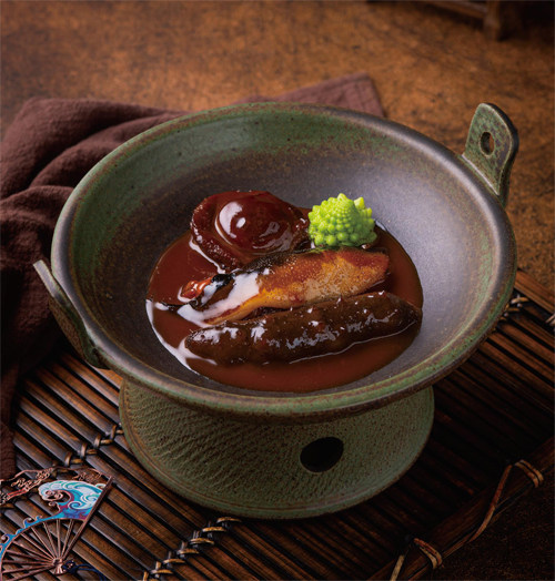 港威酒店Three on Canton 呈献了一系列健康有益的药膳美馔,让食客于暖意绵绵中滋补养生。 美食之旅由一系列滋养前菜开始,花雕枸杞醉鸡卷、凉拌麻辣鲜淮山、藜麦桃胶沙律及四川麻辣黑木耳沙律等。特别推介花雕枸杞醉鸡卷,大厨先以慢煮方式烹调鸡肉,再把它放进充满香料、枸杞、辣椒及陈年花雕酒的汤包中浸泡一晚,让鸡肉充分吸收食材的味道,香滑可口的鸡卷令人垂涎。 大厨为宾客预备了多款暖胃主菜,包括