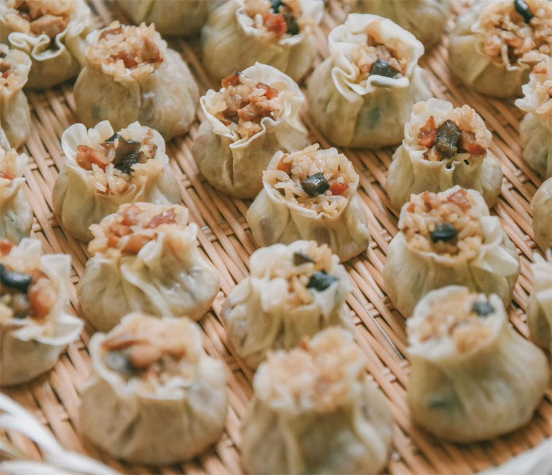 做法 01 烧开水,称面粉。把180g 沸水加入300g 面粉,一边倒一边搅拌。揉面成团醒一会,糯米装碗。糯米里倒入沸水,沸水超过米面1cm 高,上锅蒸。然后继续揉面。将猪肉切成小方肉丁,花菇水发切丁,葱洗净不切,姜切片。02 海参腊肠也切丁,海参要切大一点。03 糯米蒸半小时,翻一翻碗底是否蒸透。04 揉好面,分剂子。开始炒馅,锅加底油,煸香姜葱,把肉丁、腊肠丁倒入煸香,倒入花菇丁。05 加老