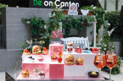 携手呈献醉人「SOM」动下午茶 在这浪漫的季节,Three on Canton 的糕点总厨匠心制作一系列粉红色的迷人美点,数款甜品更加入了Somersby Sparkling Rosé,卖相甜美精致,果香味道清新怡人。下午茶更可配Somersby 苹果酒、咖啡或茶,让您随心享受微醺的下午。每位宾客更可免费获赠Somersby Sparkling Rosé 乙支及酒杯乙只。推广期间,Be on C