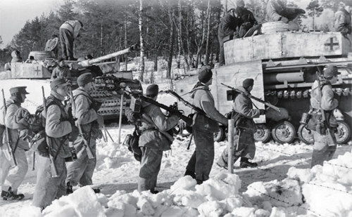 列队开进的德军士兵 在法国的阿尔萨斯和洛林地区取得重大突破后,盟军于1945年1月下旬发起了“格兰德拉姆”行动,旨在消除斯特拉斯堡以南延展在莱茵河西岸的“科尔马口袋”,而德军第19军则奉命不惜一切代价守住这个突出部并适时反击。在这个“口袋”地区的最北侧,一支美军步兵部队就遭遇到了德军的强有力冲击。 第30团先胜后败 在科尔马镇以北几千米远的地方,科尔马森林的东南面,有一处被称作拉迈森鲁日的农