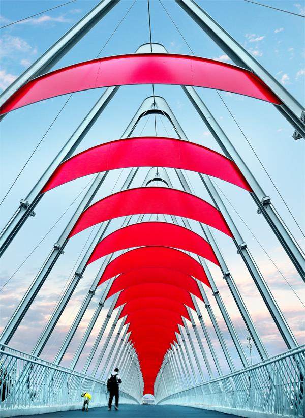 成都环城生态公园全环点缀着78座桥梁,它们或蜀风雅韵、或国际时尚,为城市天际线划出一道道美丽弧线。这一座座桥梁,是连接绿道的重要枢纽,也成为独特而极具魅力的城市标识。 串珠成链 形成城区慢行系统 桥梁于城市而言,记录着历史,见证着变化,承载着未来。 成都是一座水网密布、河桥众多的城市。“江众多作桥”,提到成都的桥,从历史悠久的万里桥、九眼桥,到热门网红五岔子大桥、如意桥……它们连接起一条条河
