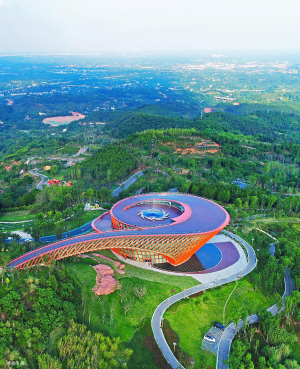 这条世界最长绿道约1.7万公里,建成后将再现《蜀川胜概图》天府胜景。 天府公园 天府公园,位于成都中轴线天府大道两侧,地处天府新区核心区内,总面积约1.6平方公里。作为成都市唯一跨天府大道中轴线的城市公园,公园周边水网丰富,突出生态功能与城市生活的紧密联系,强调运动、娱乐、游览、艺术等都市功能,是天府大道上的一道靓丽的景观轴。 成都天府新区投资集团有限公司致力于做公园城市的综合运营商,图为公