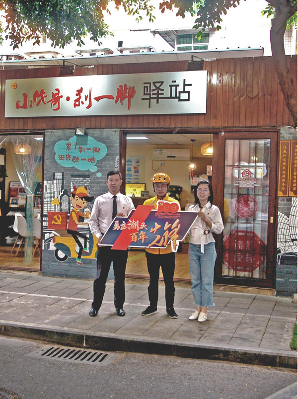 友善公益,是成都外化于行的文化表达。[创新创造、优雅时尚、乐观包容、友善公益]的天府文化,让人文成都别样精彩。 [小牛哥·刹一脚]驿站 “小牛哥·刹一脚”驿站是牛市口街道为快递小哥、外卖骑手和网约车司机等打造的提供免费饮水、热餐、冷藏、上网、充电、观影、阅读7种服务的小憩驿站。2021年3月,“小牛哥先锋车手”志愿服务队成立了党支部,支部目前有党员3人,入党申请人6人。 新时代文明实践中心