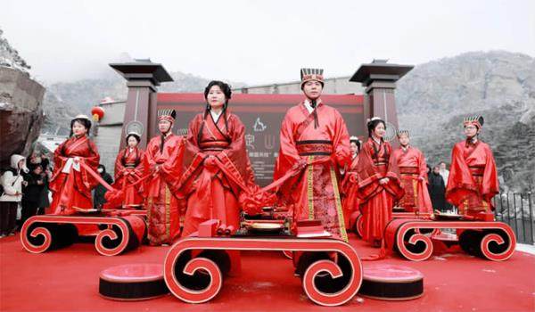 初春的天柱山云雾缭绕,碧树含烟。2023年2月13-14日,“缘分天柱定 山盟海誓行”首届天柱山“山盟海誓”婚旅文化节在这里隆重举行。作为深耕婚恋文化37年的恋爱婚姻家庭杂志,我们不仅见证一场穿越千年的“执子之手 缘圆天柱”集体婚礼,并在首届天柱山“山盟海誓”婚旅论坛发言。 天柱山是安徽三大名山之一,国家5A级旅游景区,不仅山清水秀,自然风光秀美,而且人文荟萃,魅力无比,作为