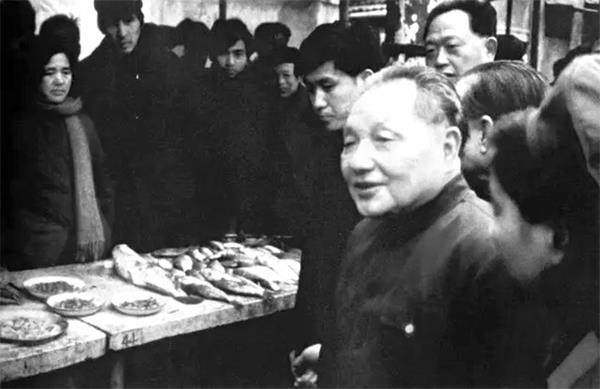 1983年2月,邓小平视察上海市静安区胶州路农贸市场 邓小平非常重视调查研究,他的许多影响深远的重大决策都来源于调查研究。改革开放初期,邓小平提出“中国式的现代化”,即“小康水平”,人均国民生产总值由1978年的250美元,提高到20世纪末的1000美元,翻两番。这个目标是邓小平根据国内外材料作出的科学判断。但到底可不可行,他要到广大人民群众在社会主义现代化建设的实践中去“算算账”,调查一下实现