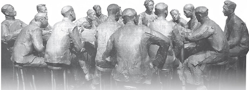 中共一大会址纪念馆内的大型场景雕塑“本党定名为中国共产党” “作始也简,将毕也钜。”1956年,古稀之年的中共一大代表董必武重回上海一大会址。35年过去,弹指一挥间。思绪万千间,他挥毫写下这8个字。 这8个字,语出《庄子》“其作始也简,其将毕也必巨”。 董必武题词的11年前,也就是1945年,在党的七大预备会议上,毛泽东引用了这句话,并说:“我们那时候就是自己搞的,知道的事也并不多,可谓年幼