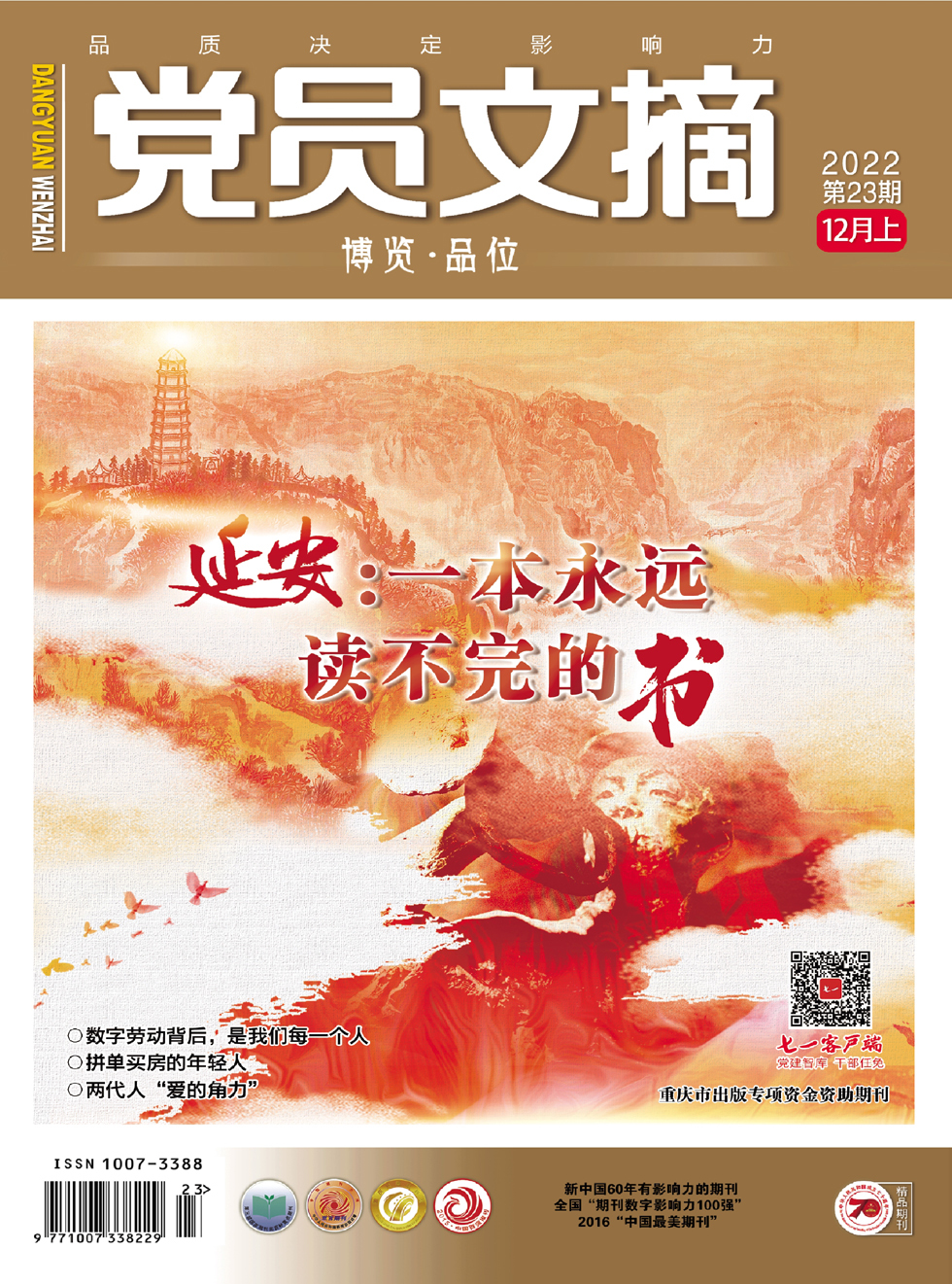 2022年12月是延安精神提出80周年。10月27日,党的二十大闭幕不到一周,习近平总书记带领新一届中共中央政治局常委奔赴陕西延安,瞻仰延安革命纪念地。在瞻仰过程中,习近平总书记强调,要弘扬伟大建党精神,弘扬延安精神。他同时指出,延安革命旧址见证了我们党在延安时期领导中国革命、探索马克思主义中国化时代化的光辉历程,是一本永远读不完的书。本期,我们围绕“延安精神”,以“延安:一本永远读不完的书”为主