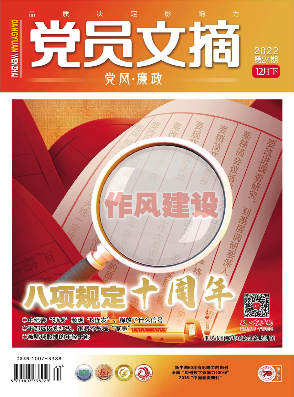 2012年12月4日,中共中央政治局会议审议通过《十八届中央政治局关于改进工作作风、密切联系群众的八项规定》,即“中央八项规定”。今年是中央八项规定出台的第十个年头。十年来,我们深入推进全面从严治党,从制定和落实中央八项规定开局破题,刹住了一些长期没有刹住的歪风,纠治了一些多年未除的顽瘴痼疾,党风政风民风焕然一新,党心军心民心高度凝聚。中央八项规定也成为我们党作风建设的代名词,成为新时代共产党