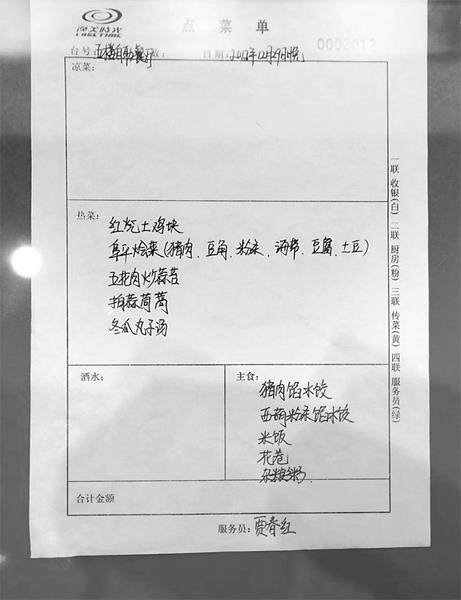习近平总书记2012年考察河北省保定市阜平县时的晚餐菜单(复制件)。初英杰/中央纪委国家监委网站 “阜平烩菜36元、红烧土鸡块45元……”贾春红,河北省保定市阜平县某经济型酒店餐饮部经理,在该酒店已工作14年,现在为客人点菜时,她总能想起10年前自己手写的一张点菜单。 在这张点菜单上,贾春红在“热菜”栏写着:红烧土鸡块、阜平烩菜、五花肉炒蒜苔、拍蒜茼蒿、冬瓜丸子汤,时间为2012年12月29日