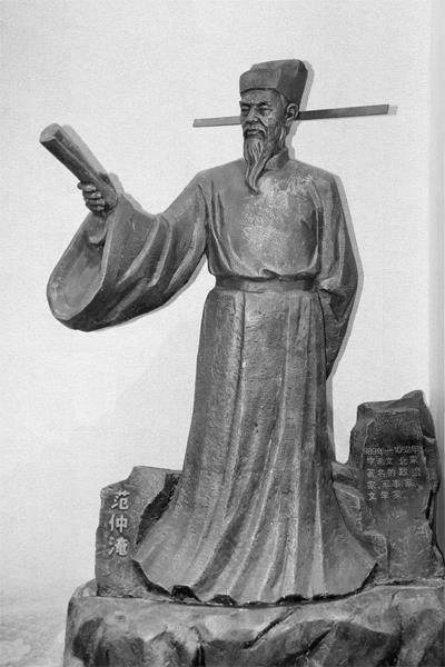 范仲淹塑像 1 我们把时间往历史深处拨转一千年,去看看,一个至今光芒万丈的名字。 河北正定高平村的一户人家,父亲早逝,母亲带着两岁的孩子辗转到了山东。孩子年纪稍长,开始寄宿读书。他的生活极其艰苦,每天煮一碗稠粥,划成四块,早晚各取两块,拌着腌菜、醋汁就食。这样的日子,他过了整整三年。 二十三岁时,这个孩子到河南商丘睢阳一所学校读书。南都留守的儿子与他同窗求学,向父亲讲述了他的情况。这位长者
