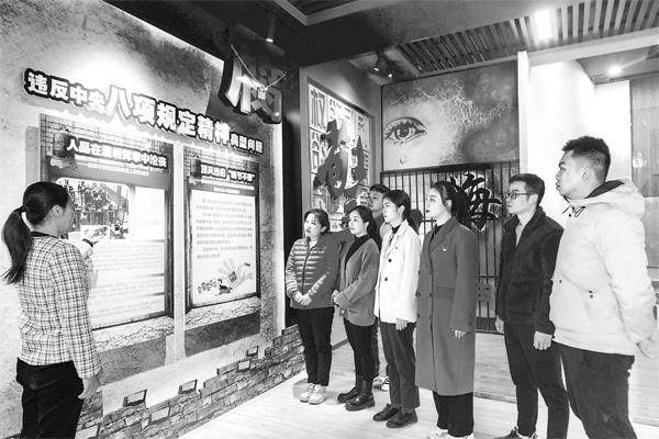 广西壮族自治区梧州市蒙山县纪委监委组织年轻干部在廉政教育基地接受警示教育。林志清/新华社 从法院到法庭再到法槌,镜头依次切换,然后聚焦于一张“青眼白龙”游戏卡牌。这张游戏卡,在一次司法拍卖中被炒到8700多万元。游戏卡曾经的主人——安徽省滁州市不动产登记中心原工作人员张雨杰随后出镜,讲述自己的贪腐之路。 这是电视专题片《零容忍》第五集《永远在路上》的一个片段。 十九届中央纪委第六次全体会议公