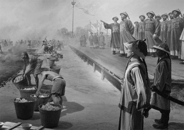 林则徐虎门销烟 1839年3月,林则徐受命为钦差大臣,抵达广州禁烟,至1840年10月离开。其间,他在虎门海滩销毁鸦片200多万斤,一次次击溃英国人的寻衅和挑战。禁烟和守城的成功,得益于他本人在禁烟运动中的刚直不阿、不畏权贵,也离不开他对时局的清醒认知。 这眼界和认知,离不开林则徐的一项颇具开创性的工作——译报活动。魏源在《圣武记》之《道光洋艘征抚记》上篇中就曾写道:“林则徐自去岁至粤,日日使