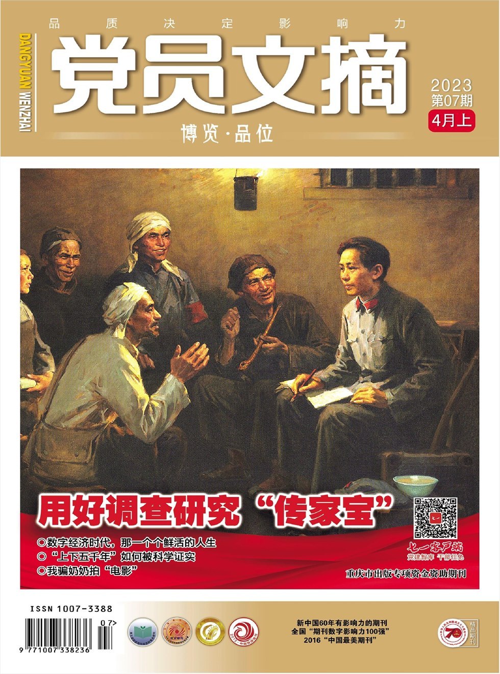 油画《农村调查》邓澍/绘 “调查研究”无疑是一个极具中国共产党特色的词语。在理论系统中,它与群众路线、实事求是等根本原则存在着密切联系,这使它不仅作为一种工作方法,而且以更为重要的面目存在于中国共产党的历史之中。回顾我们党的历史可以发现,调查研究屡次在紧要关头帮助中国共产党修正自己的失误,甚至最终促成了改革开放这样重大的方向转变。而在仍需坚持“摸着石头过河”的今天,调查研究能够使领导干部们了解,