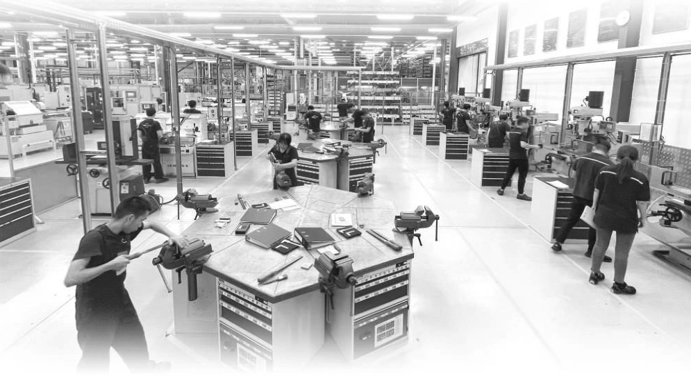 江苏亿迈齿轮(太仓)有限公司员工在上实践课。《人民日报》 “刺刺刺……”火花四溅。站在操作台前,王东时而对着电子图纸核对参数,时而拿起工具敲敲打打,时而熟练地操控机器面板进行电焊。不一会儿,一块方方正正的生产模具已有些模样。会看图纸,会算参数,还玩得转智能化设备,40多岁的王东如今在新岗位上干得得心应手。 当了20多年模具工的王东,前几年应聘来到江苏骏伟精密部件科技股份有限公司。从