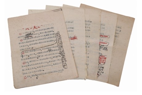 在南昌八一起义纪念馆,有一份周恩来亲笔修改过的《八一起义说明稿》。这份稿件写在16开方格信纸上,共5张,原稿为时任纪念馆副馆长杜南用蓝色钢笔书写,黑色毛笔小楷字为周恩来修改字迹。 1957年,为纪念中国人民解放军建军30周年,向全国人民全面具体地介绍八一起义的经过,《解放军报》决定出版名为《八一起义》的连环画作品,并要求南昌八一起义纪念馆提供连环画的文字说明稿。纪念馆起草的介绍稿送到北京后,立即
