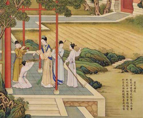 历朝贤后故事图·禁苑种谷绢本设色 30.8×37.4cm 清 焦秉贞 故宫博物院藏 谷物种植 稷黍常见 自古以来,中国人即以谷物作为主食,人们常说“五谷杂粮”,指的便是主要的粮食作物。《诗经·周颂·噫嘻》曰:“率时农夫,播厥百谷。”说明周朝时期,农作物的种类已经相当丰富。 《诗经》中出现的主食,大约有六类,包括水稻、小麦、稷、黍、麻、牟等。从《魏风·硕鼠》中的“硕鼠硕鼠,无食我麦”,《鄘风