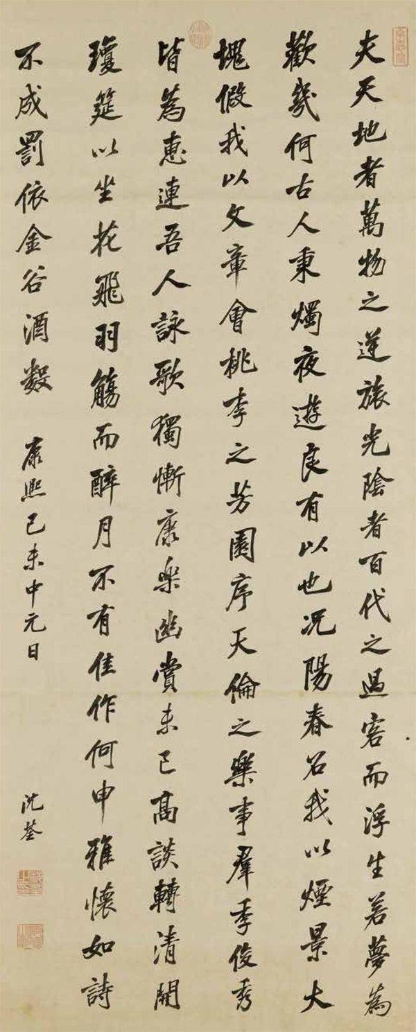 桃李园序 行楷 纸本墨笔 清 沈荃 台北故宫博物院藏 整体来讲,清代书法主要表现为三种类型:一是清代初期书法家将帖学再次推向极致,加上“康熙推崇董其昌书法,乾隆偏爱赵孟頫书法”的艺术偏好,进一步推动了帖学的流行;二是画家群体的书法作品呈现出更富个性化的趣味,并且贯穿清代始末,不仅与正统的“馆阁体”书法形成鲜明的对比,而且为清代书坛注入了新的活力与营养;三是碑学的开创使得清代书坛更加活跃,推动了清