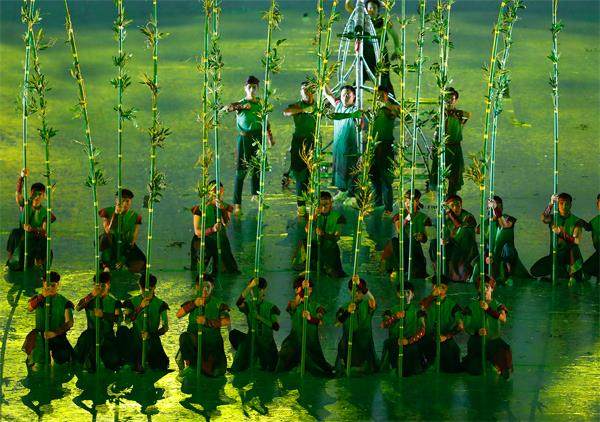 “竹式外交”的体现?2022年5月12日晚第31届东南亚运动会开幕式上的演出。 近期,越南外交颇显活跃。4月30日迎来了到访的日本首相岸田文雄,5月12日越南总理范明政出席了在华盛顿举行的美国—东盟特别峰会,同日越南还开始高调举办第31届东南亚运动会。 2021年2月召开的越南共产党第十三次全国代表大会,对越南外交做出了新的战略部署。此后,越南通过研究制订至2035年的外交战略规划、对外交部门