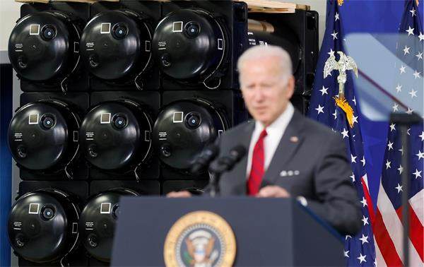 2022年5月3日,美国总统拜登在洛克希德·马丁公司工厂就美国对乌克兰的安全援助发表讲话,身后为洛马公司生产的“标枪”反坦克导弹。 3月14日,瑞典斯德哥尔摩国际和平研究所(SIPRI)发布了全球军售趋势报告。报告显示,2017~2021年全球武器交易额与2012~2016年相比下降了4.6%,但同期美国对外军售交易额却增长了14%,全球占比从32%上升至39%,稳居世界第一。位居第二的俄罗斯同