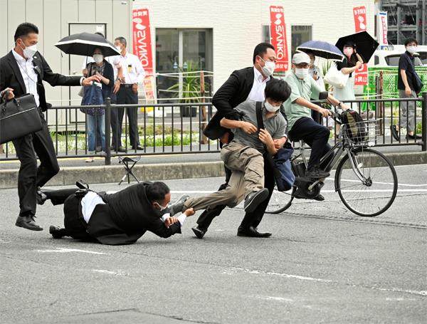 2022年7月8日晨,山下彻也行刺日本前首相安倍晋三后,被现场安保人员抓捕。 安倍遇刺是小概率事件,但这冰山一角之下,却是日本社会的沉疴隐忧迁延不愈、多种矛盾长期激化的现实。