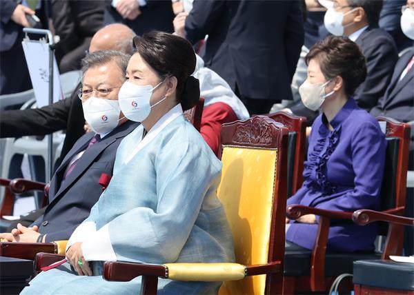 2022年5月10日,韩国卸任总统文在寅夫妇、前总统朴槿惠出席新任总统尹锡悦就职典礼。 在“光复节”(8月15日)到来前夕,韩国朝野纷纷猜测系狱已久的前总统李明博将被尹锡悦政府特赦。前任总统文在寅在卸任之前于去年年底特赦了朴槿惠,尹锡悦则在当选总统后于今年4月在大邱市登门拜访朴槿惠并向其“致歉”,而当年正是一手把朴槿惠拉下马并送进监狱成就了尹锡悦的大名。不过李明博最终并未出现在光复节特赦名单上,