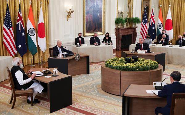 2021年9月24日,美国总统拜登、日本首相菅义伟、澳大利亚总理莫里森及印度总理莫迪在白宫举行了首次面对面“四国安全对话”。 9月24日,美国总统拜登、日本首相菅义伟、澳大利亚总理莫里森及印度总理莫迪在白宫举行了首次面对面“四国安全对话”(Quad)。会后发布的联合宣言显示,四国将在疫情应对、卫生安全、基础设施、气候变化、人文教育、关键和新兴技术、网络安全和太空等领域展开合作。此外,四国还共同发