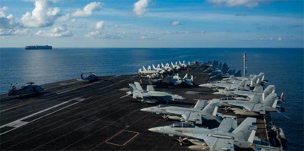 美国海军“里根”号航母。 近年来,美国对华竞争愈益向军事领域倾斜。拜登上台以后,这一倾向更加凸显。美国对华竞争向军事领域倾斜的主要表现在:首先是美国全政府国防化和军事化程度加强。这一方面表现为非军事部门职能的军事化渗透,另一方面表现为军事化部门职能的专业化程度加强。其次是美国自上而下多方力量不断高调推进军事力量在印太地区的部署,对华指向性极其明显。 非军事领域职能的军事化渗透 近年来,越来越